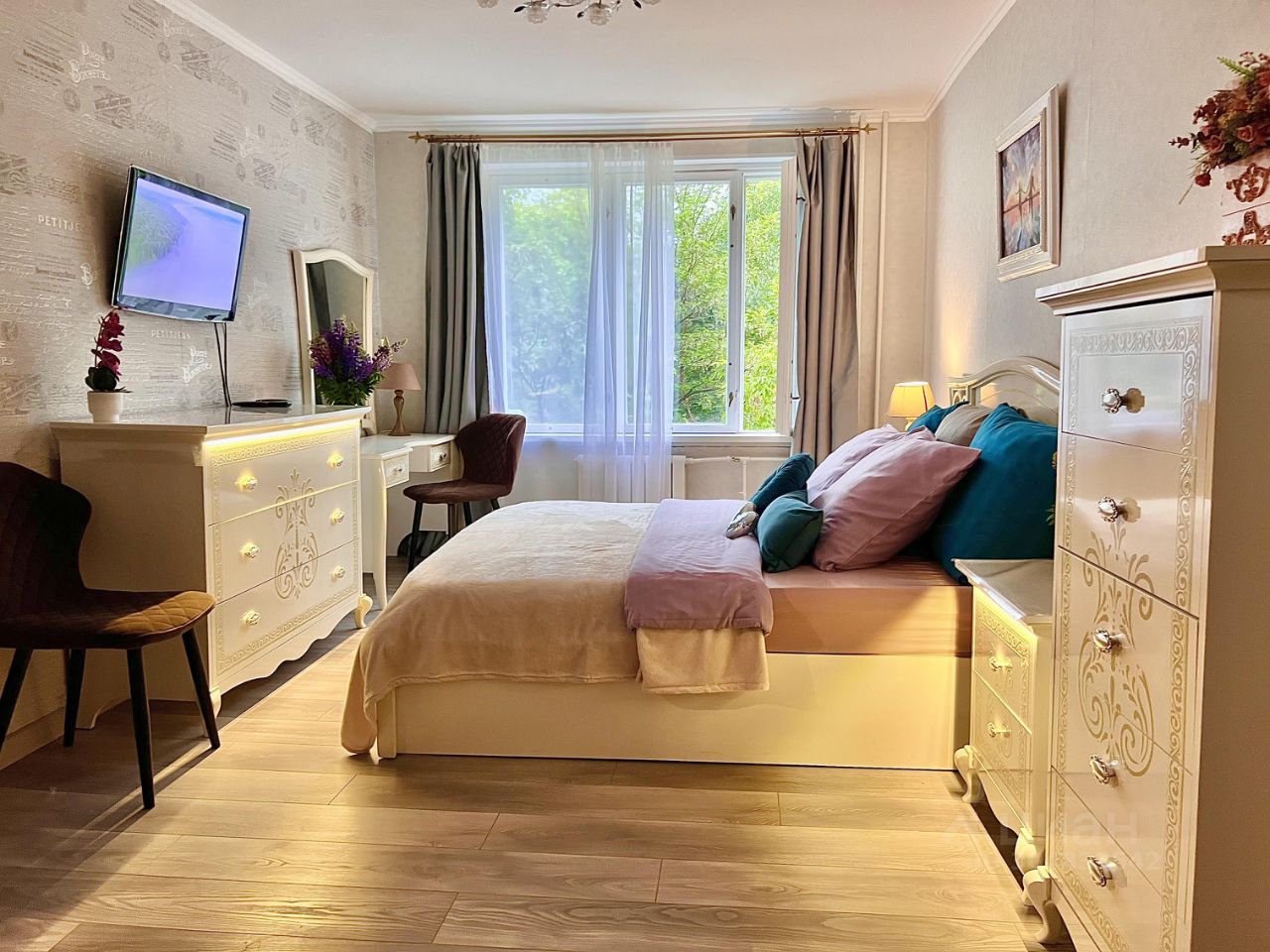 Белоснежная спальня с подсветкой и ортопедическим матрасом, смарт телевизор, шторы блекаут, создают атмосферу уюта и позволяет вам прекрасно отдохнуть.
