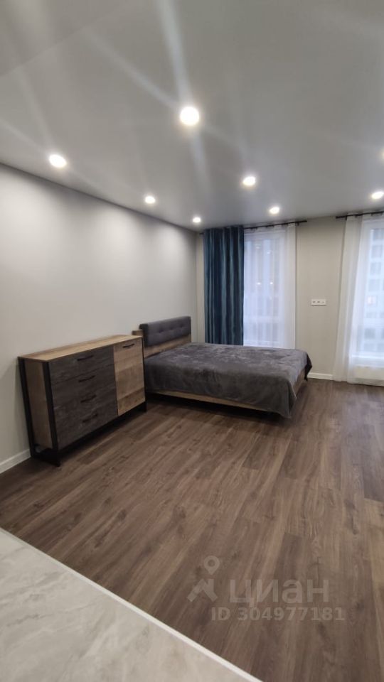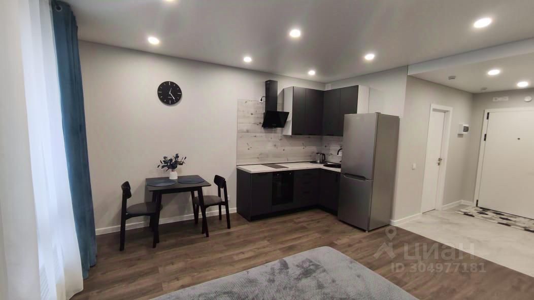 В квартире есть все необходимое для проживания: встроенная кухня с бытовой техникой (варочная поверхность, духовой шкаф, вытяжка, холодильник), обеденная группа, двуспальная кровать, диван, шкаф, стиральная машина.