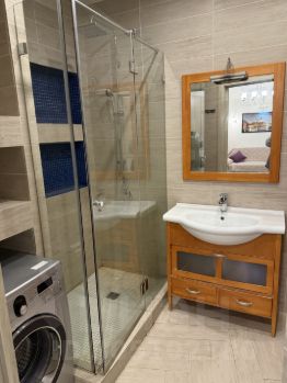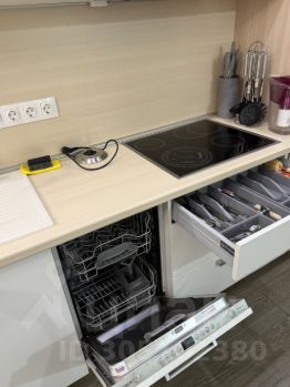 Мебель на кухне, включая обеденный стол и стулья (посуда то же есть). Имеется вся бытовая техника. В комнате, в прихожей полный комплект мебели. ТВ на кухне и в спальне., холодильник, стиральная, посудомоечная, машина, кондиционер, пылесос. Потолки более 3 метров.