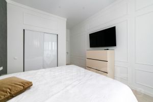 Пространство квартиры спланировано функционально и продуманно: кухня, совмещенная с гостиной, спальня с гардеробной и выходом на застекленную лоджию, совмещенный санузел. В холле предусмотрены встроенные шкафы для хранения, гардеробная.