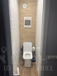 В туалете скрытый шкаф для хранения и санитарный душ.