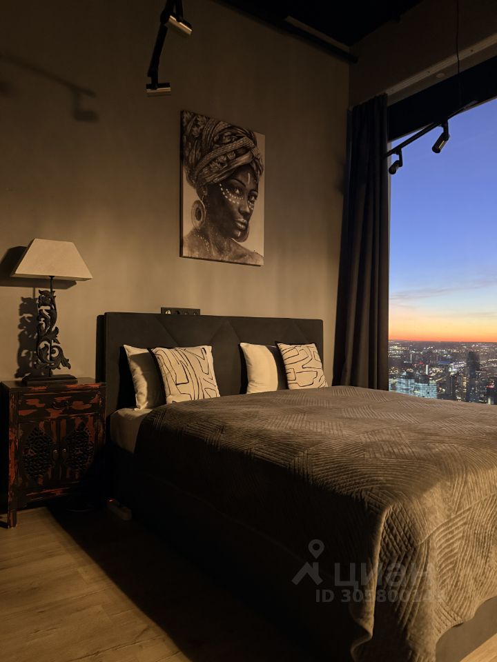 Стильная студия апартамент в башне "Нева" Nati 51кв.м. на 59 этаже с дизайнерским ремонтом и видом на городскую панораму. Вид на закатную сторону! Одна из самых новых башен Москвы Сити.