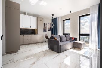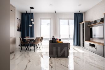 В квартире выполнен качественный новый ремонт. Современный интерьер в светлых, пастельных тонах укомплектован стильной мебелью и бытовой техникой. В санузлах установлена сантехника известных производителей, установлены датчики протечки воды. На кухне стоит фильтр для воды. Установлены кондиционеры. Благодаря панорамному остеклению пространство наполнено светом, из окон открываются вдохновляющие виды на город.