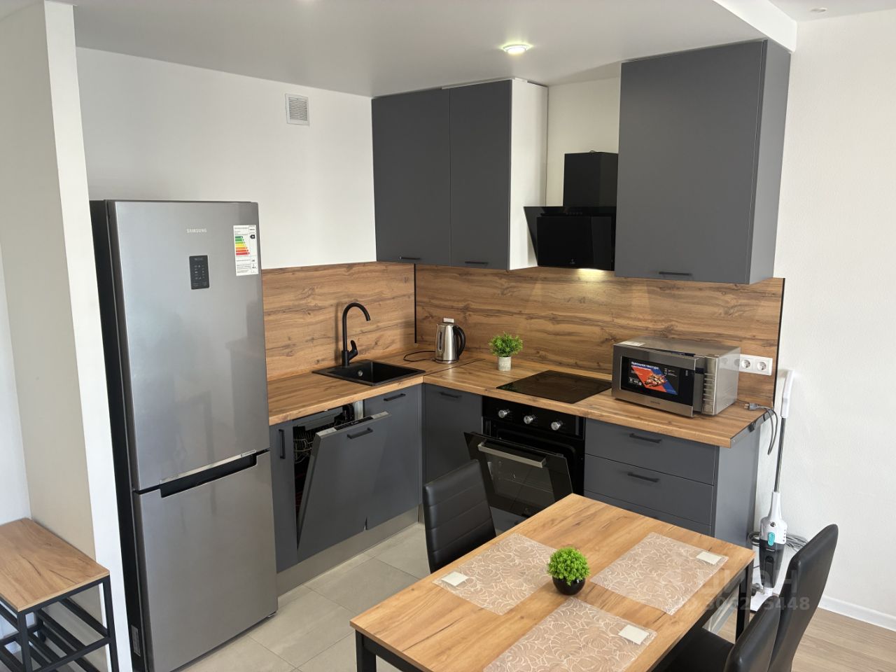 ЖК "Второй Нагатинский" 2023 года постройки. Евродвушка 42кв, совмещенная гостиная и кухонная зона.
