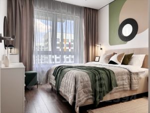 Cдается квартира в новом блоке ЖК "Green park" с благоустроенной территорией. Концепция ЖК - двор без машин: закрытый двор, много детских площадок. Также в доме имеется подземный паркинг, можно арендовать м/м или воспользоваться наземной парковкой