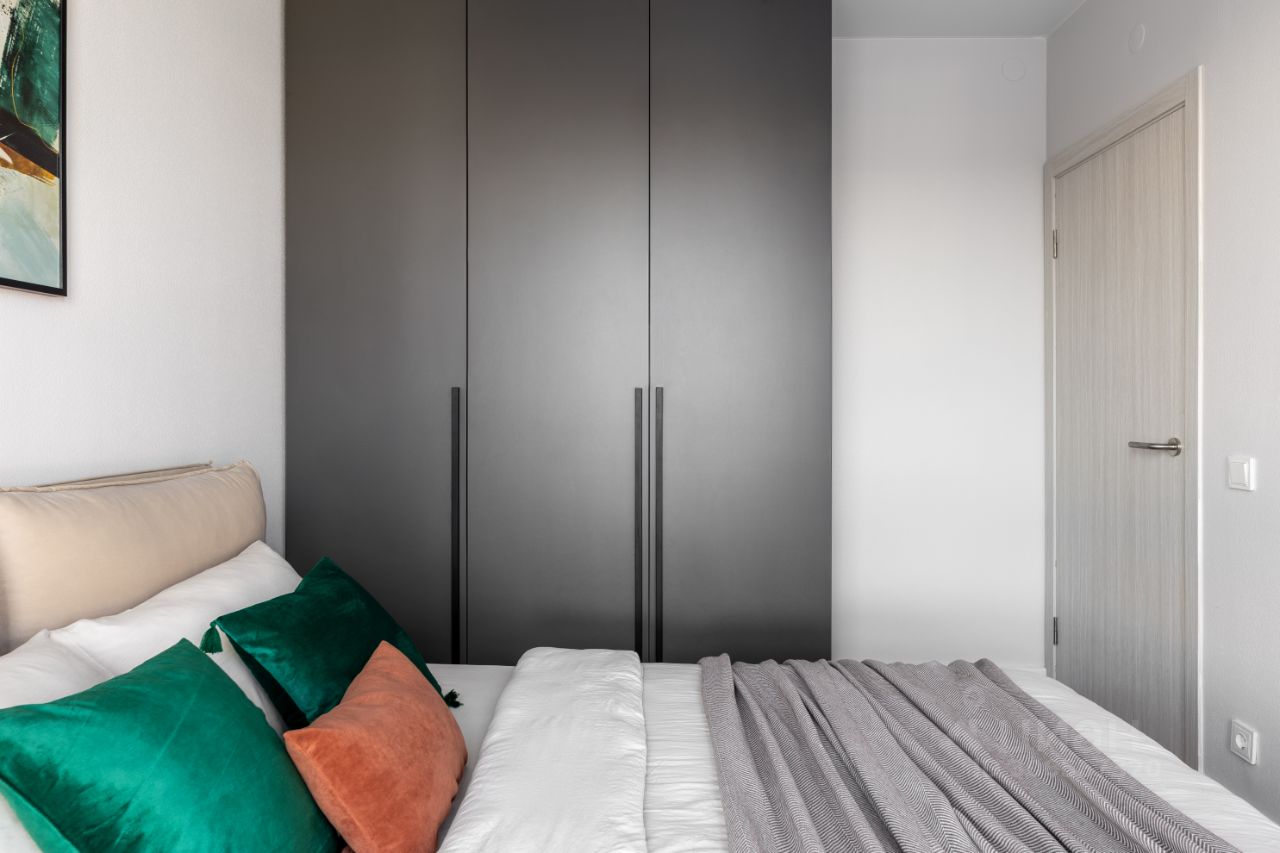Полностью с мебелью и техникой: раскладной диван, кровать 160*200, шкафы в прихожей и спальне, рабочее место, кухня, кондиционер, индукционная плита, посудомойка, вытяжка, духовка, холодильник No Frost, стиральная машина, микроволновка. Фото реальные. Сдается от собственника и только на длительный срок.