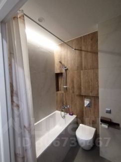 В квартире есть все необходимое для комфортного проживания: новая мебель на кухне и в комнате, современная бытовая техника — холодильник, телевизор, посудомоечная и стиральная машины. Санузел совмещенный, оборудован ванной.