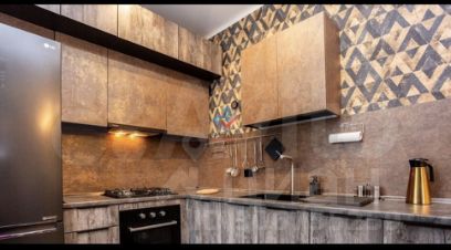 -Просторная кухня-гостиная для комфортной жизни с современным гарнитуром и качественной дорогой столешницей. Фасады кухня Германия,столешница Австрия. Двери магнитные. Краска моющаяся. Нависной потолок.Техника встроенная, 2 вытяжки, вместительные шкафы.