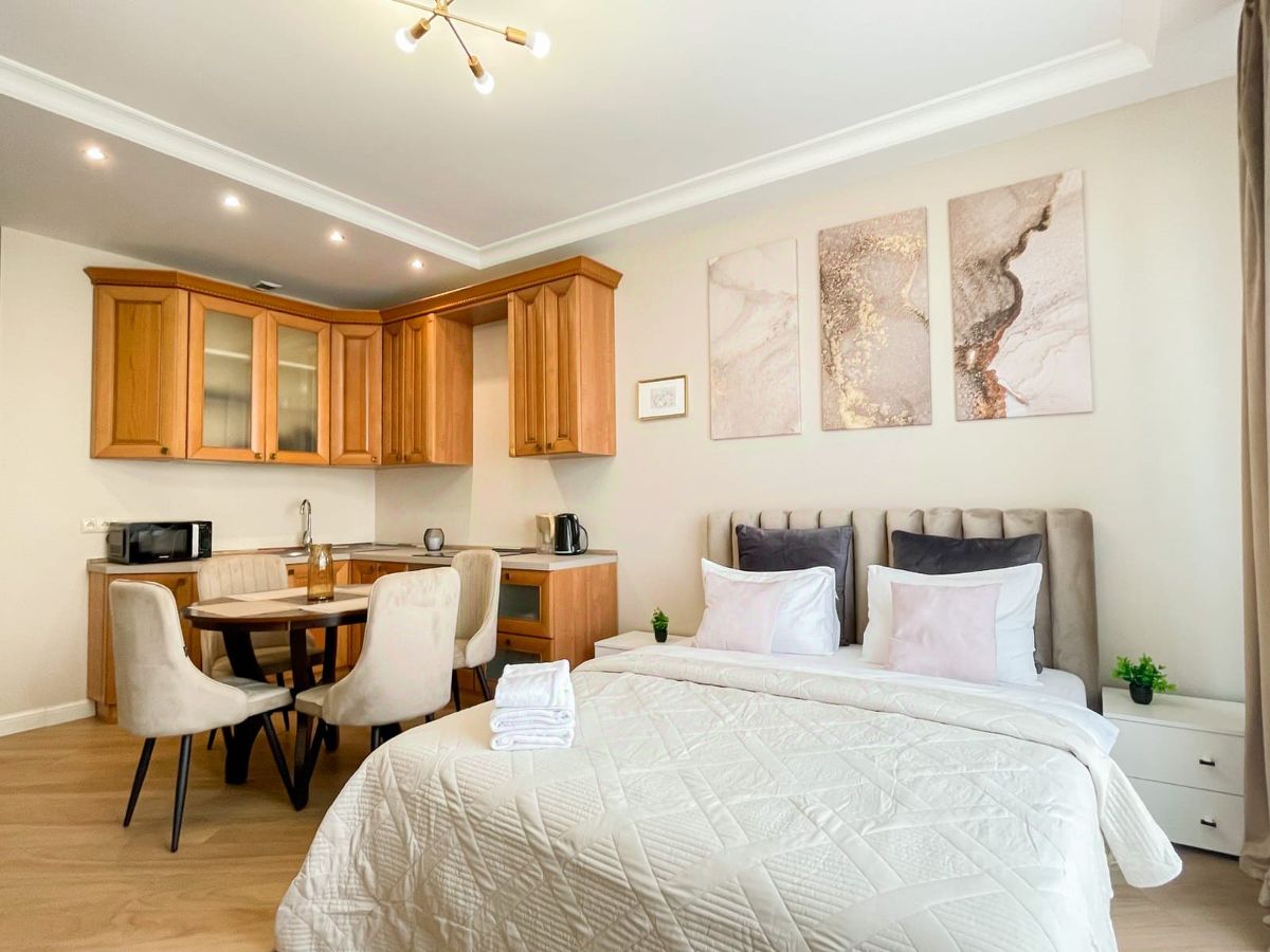Вас будет окружать стильная, но уютная атмосфера в апартаментах, и бурлящая , активная жизнь за их пределами!