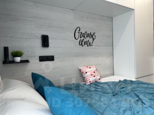 Кровать с хорошим ортопедическим матрацем, много мест хранения, шкафы, прикроватный светильник.