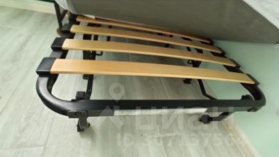 Мебель: диван-кровать Икея с ламелями на одного человека, шкаф-купе, стол. Можно поставить ваше спальное место. Студия на цокольном этаже, окно есть.