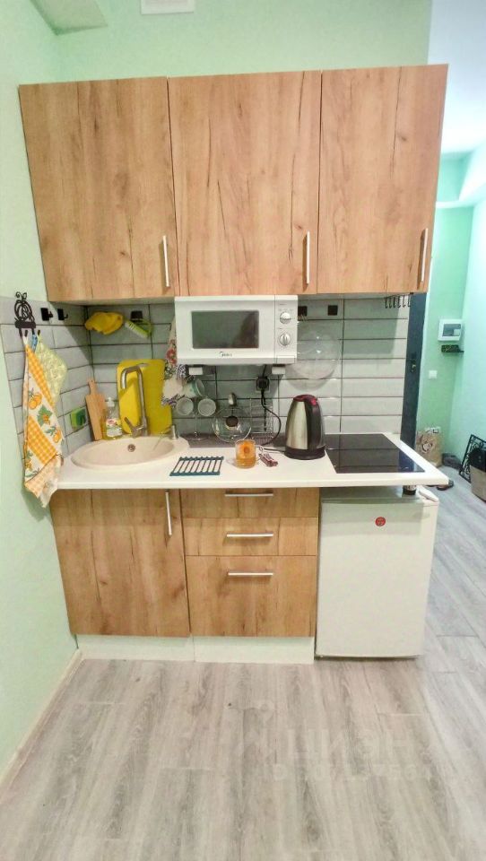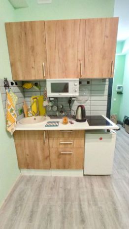 Обычный качественный ремонт. Бытовая техника: холодильник, стиральная машина, плита варочная панель, чайник, микроволновая печь, фен. Есть посуда.