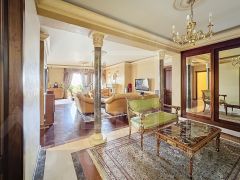 ID 46345. Роскошная 6-комнатная квартира в современном охраняемом доме. Функциональная планировка: просторная гостиная, кухня-столовая, основная спальня с кабинетом и со своей ванной комнатой, детский/гостевой блок: три спальни и две ванные комнаты, пятая гостевая спальня, гардеробная комната, зимний сад, гостевой туалет и постирочная. Дорогая отделка в классическом стиле, оборудование от ведущих производителей, квартира полностью меблирована. Дом огорожен, вход по пропускам, два машино-места в подземном гараже входят в стоимость.