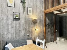 Семейные двухуровневые апартаменты. Подойдут для комфортного размещения 4 человек. Окна выходят во двор