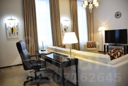 В номере: спальная комната с двуспальной кроватью, гостиная, совмещенная с кухней, диван, кресло, шкаф-купе, гардероб, комод, два телевизора с плоским экраном, Wi-Fi, телефон, рабочий стол, сейф, расширенный набо