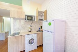 Апартаменты студия для 4 гостей. Спальные места диван и двуспальная кровать. В квартире есть собственная ванная комната, кухня с необходимой посудой и техникой, стиральная машина. К услугам гостей постельное белье, полотенца, WI-FI.