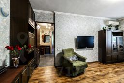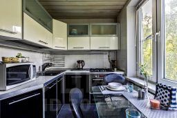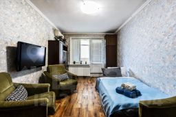 Есть всё для комфортного проживания. В одной комнате широкая двуспальная кровать, в другой двуспальный диван, телевизор со 200+ цифровыми каналами, столик. Квартира оборудована холодильником, плитой, микроволновкой, духовкой, чайником, стиральной машиной. Предоставляется посуда, бокалы, столовые приборы, всё необходимое для приготовления пищи, а также утюг с гладильной доской, фен, стиральный порошок, гель для душа и т.д. Санузел совмещенный, чистый, предоставляются полотенца, гель для душа.