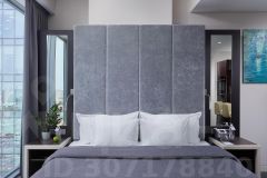 В апартаментах есть все для комфортного проживания: барная стойка с высокими стульями, кресло, двуспальная кровать, вместительный шкаф, гладильная доска с утюгом, большая ТВ-панель, кондиционер, бесплатный Wi-Fi, многоканальная телефонная линия, индивидуальный сейф и мини-бар.