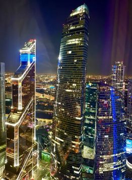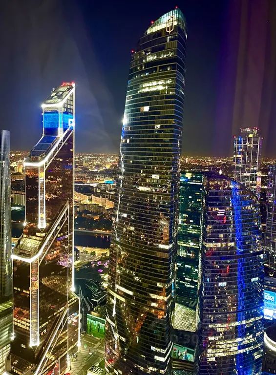 На высоком этаже, вид из она охватывает как город так и небоскребы, останкинская башня, белый дом и обширный вид на город