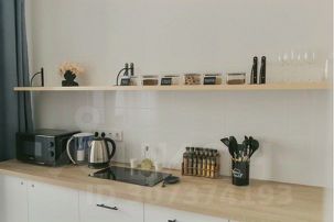 - Индукционная плита; - Кастрюли, сковорода; - Столовые приборы; - Тарелки, чашки, салатники, стаканы и бокалы для вина; - Электрический чайник; - СВЧ; соковыжималка для цитрусовых, терка для сыра; - Чай, растворимый кофе, сахар, крупы.
