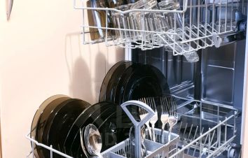 Кухня со всем необходимым (посудомоечная машина, холодильник, варочная панель, духовка, микроволновая печь, чайник, посуда)