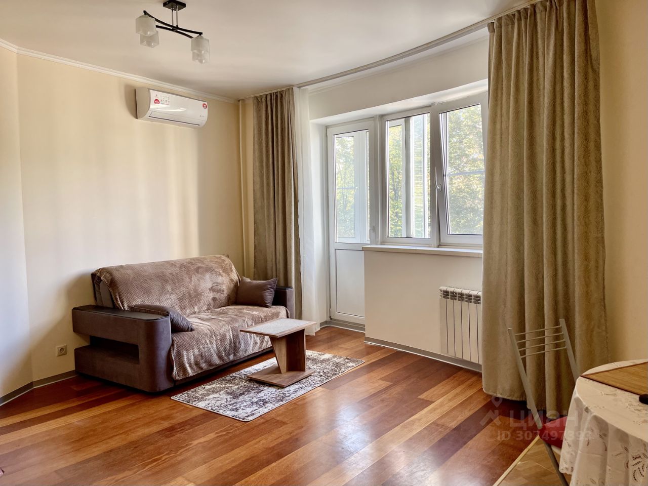 Квартира не сдавалась, сделан свежий ремонт! имеется два санузла, балкон, оборудованная кухня, гостиная, гардеробная и изолированная комната с двуспальным диваном и креслом.