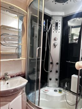 В квартире проведен косметический ремонт. В комнате есть необходимая мебель, а на кухне — холодильник и стиральная машина. Санузел совмещенный, оборудован душевой кабиной. Имеется один балкон. В доме установлены два пассажирских лифта и есть мусоропровод, поэтому можно легко избавиться от мусора.