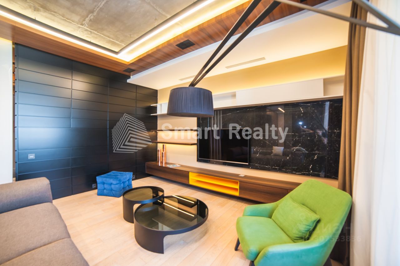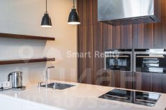 Гостиная, как место отдыха всей семьи, оснащена встроенной музыкальной системой, современным телевизором. Из гостиной проход на уютную кухню, оснащенную современной техникой Siemens, включая посудомоечную машину, варочную панель, духовой шкаф, совмещенный с СВЧ, пароварку, винный шкаф, встроенные холодильник и морозильник Liebherr.