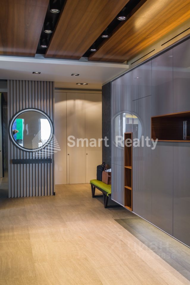 В прихожей вместительный встроенный шкаф, гостевой санузел с душевой кабиной, постирочная со стиральным и сушильным автоматами.