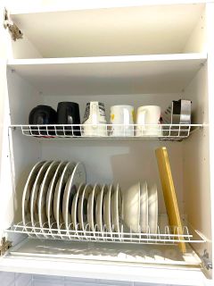 Вся необходимая бытовая техника (стиральная машинка, полноразмерный холодильник, фен, телевизор, утюг и гладильная доска, чайник, электрическая плита, духовой шкаф, микроволновка);