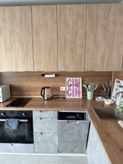 В квартире есть все необходимое: двухспальняя кровать, диван кровать, стенка со шкафами, рабочий стол для компьютера, вместительный шкаф-купе в коридоре, стиральная машина, отличный кухонный гарнитур с посудомойкой, духовым шкафом, плитой, холодильником, микроволновкой, чайником, новая посуда. вид на город и рассвет.