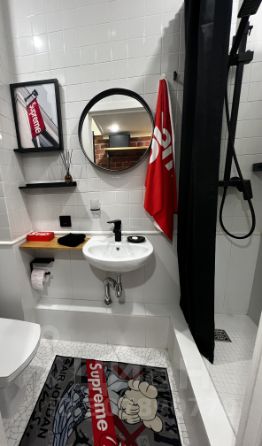 Апартаменты выполнены в стильном дизайнерском ремонте. В комнате есть вся необходимая мебель, что позволяет сразу заехать и наслаждаться комфортом. Кухня полностью оборудована и готова к использованию. В апартаментах установлены кондиционер, микроволновка, холодильник и стиральная машина — все для вашего удобства. Санузел совмещенный, с современной душевой кабиной.