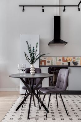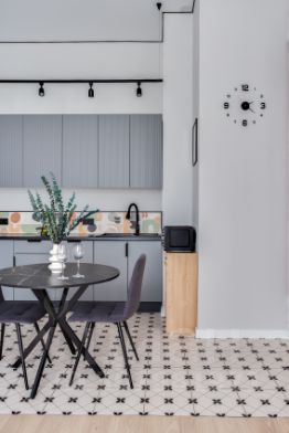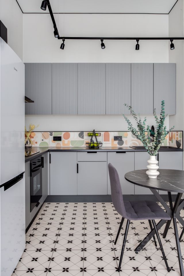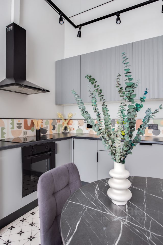 Кухня оснащена всей необходимой техникой - холодильник, посудомоечная машина, варочная поверхность, духовка, микроволновка, вытяжка.