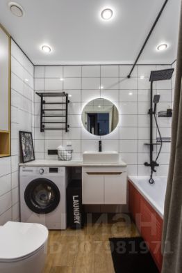 В ванной установлена стиральная машина. В гостиной установлен кондиционер, большой телевизор со Смарт-ТВ.