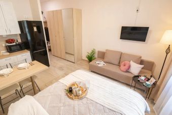 ЖК "Летний сад". Двуспальная кровать. Кондиционер. Посудомоечная машина. Высокий этаж. Бесконтактное заселение. Wi-Fi. В пешей доступности Банный двор и микрохирургия глаза им. С. Н. Федорова. Высокий рейтинг в сервисах бронирования.