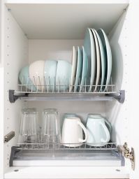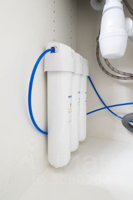 В кухонной зоне установлена варочная панель, чайник, микроволновка, духовой шкаф, посудомоечная машина, большой холодильник, проточный фильтр для воды, а также имеется необходимая для приготовления и приёма пищи посуда.