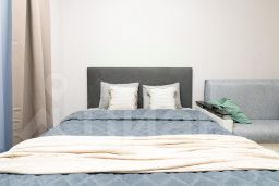 В студии имеется 2 раздельных спальных места - двуспальная кровать (160х200) и раскладной диван (160х200).