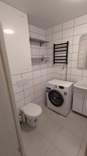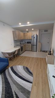 Ремонт от застройщика, установлен кухонный гарнитур с новой техникой (холодильник, варочная плита, духовка, посудомоечная машина, вытяжка); в ванне стиральная машина; кровать, диван, шкафы; проведен интернет; установлен телевизор.