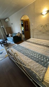 В квартире имеется 2х спальная кровать с нормальным матрасом, раскладной диван, большой комод, телевизор, WiFi , встроенный шкаф, кондиционер, холодильник, плита, духовка.