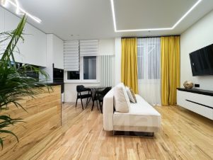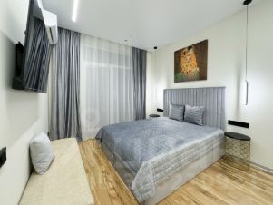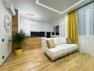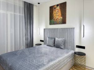 Предлагается в аренду стильная и функциональная евро-двухкомнатная квартира с дизайнерским ремонтом в современном ЖК. Планировка включает просторную кухню-гостиную и изолированную спальню. Вопрос хранения вещей полностью решен благодаря двум вместительным гардеробным комнатам. Удобство и комфорт обеспечивает ванная комната, в которой есть и ванна, и отдельная душевая кабина. Квартира укомплектована встроенной кухней с полным набором европейской техники, двумя телевизорами LG 4K (55 и 50 дюймов) и теплыми полами в прихожей и санузле. В отделке использованы качественные материалы — натуральная паркетная доска и керамогранит.