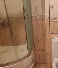 В квартире - душевая кабина, лоджия застекленная 6 кв. м. Пластиковые окна, ламинат. Диван на кухне и в комнате, оба раскладываются. Холодильник Индезит большой двухкамерный. Плита электрическая 4 конфорки и духовка. Стиральная машина ARDO на 5 кг. Встроенные шкафы с зеркалами от пола до потолка. Кухонная мебель из натурального бука.