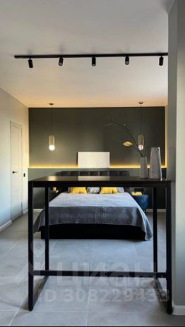 Планировка - совместные спальня и кухня + отдельная комната, которую можно использовать под кабинет + отдельная гардеробная комната + лоджия.