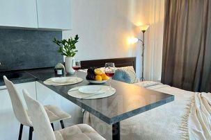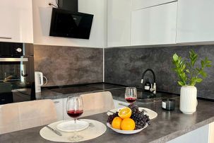 В кухонной зоне: холодильник с морозильной камерой, варочная панель, СВЧ-печь, чайник. Набор посуды и столовых принадлежностей на 4 персоны. Чай и кофе. Вы сможете приготовить себе завтрак, обед и ужин.