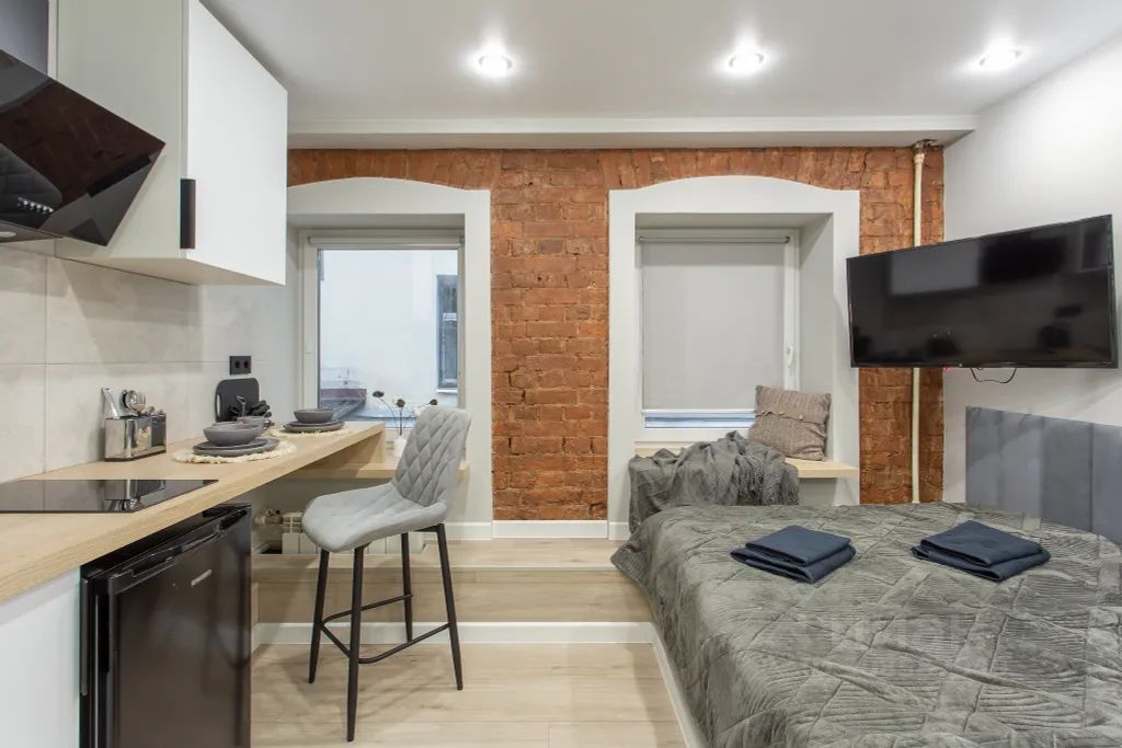 Представляем вам новые стильные апартаменты с дизайнерским интерьером в стиле loft, расположенные в 5 минутах от м. Охотный ряд, Кузнецкий мост, Тверская, Чеховская, Трубная. Мы продумали каждую необходимую деталь для вашего комфортного проживания! Всегда идеальная чистота и порядок. Заселение происходит бесконтактно, на дверях установлены электронные замки с индивидуальным кодом, по которому больше никто не зайдет, никаких встреч по передаче ключей, всё происходит бесконтактно. Договор подписывается электронно. В апартаменте имеется двухместная кровать, кухонный гарнитур с вытяжкой, варочной панелью и раковиной. Обеденная зона, включающая в себя: СВЧ, холодильник, чайник, кухонные и столовые приборы, кастрюлю, сковородку, чай, кофе, соль, сахар, приправы.