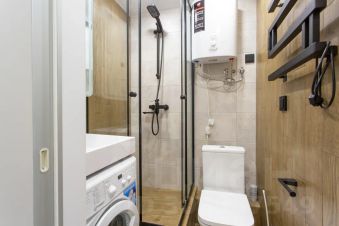 В комнате для вашего комфорта установлен кондиционер, смарт-ТВ с множеством телеканалов и онлайн-кинотеатром. Санузел оснащен душевой кабиной, большим шкафчиком с зеркалом и подсветкой, змеевиком для сушки белья, стиральной машиной. Нашим гостям предоставляется безлимитный высокоскоростной Wi-Fi. Всегда чистое постельное бельё, средства гигиены (жидкое мыло, туалетная бумага, одноразовые зубная щетка с пастой).