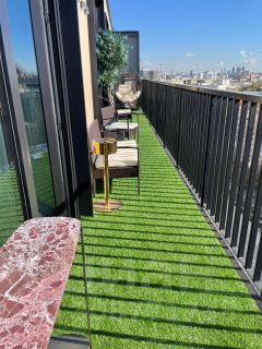 И еще одна из изюминок квартиры: 14 метровая терраса, которую вы можете использовать под разные цели, наслаждаясь панорамой города.