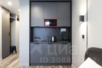 - Кухня с холодильником, плитой, микроволновкой, чайником и посудой