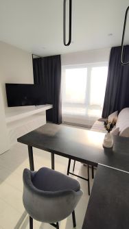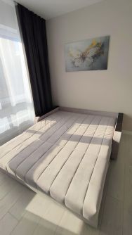 Есть все необходимое для жизни: телевизор, мебель, холодильник, стиральная машинка, пылесос, сушилка для белья, шкафы для хранения Ваших вещей, зеркала, рабочее место, посуда, микроволновка, кондиционер (с функцией тепла/холода).