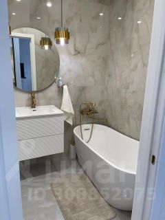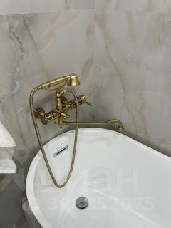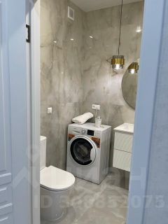 Ванная комната- стиральная машинка, современная ванна с модными смесителями.