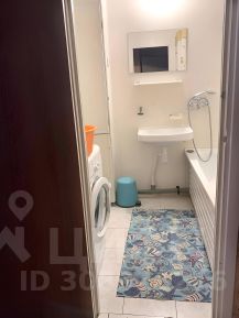 В ванной комнате стиральная машина.